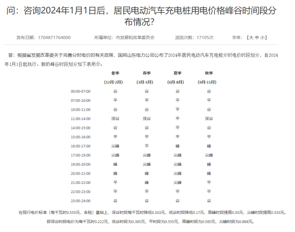 上圖是山東居民電動充電樁的分時段電價。由于光伏發電的大規模推廣,在春秋冬三季,中午11點到14點,出現了深谷電價,每度電只有0.222元,假如家庭自備充電樁,在深谷充電,純電汽車按百公里電耗15度計算,每百公里電動車電費是3.33元,折合一公里不到4分錢。如果用油,家用車一般百公里8升,按照8塊錢每升,折合一公里要6毛4分錢,中間差了10倍還要多。
