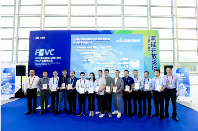 會上,上海市經(jīng)濟(jì)和信息化委員會智能制造處副處長陳可樂、上海國際汽車城(集團(tuán))有限公司總經(jīng)理助理陳杰,共同為燃料電池系統(tǒng)、膜電極、雙極板、質(zhì)子交換膜、催化劑等13家核心零部件龍頭企業(yè)代表授予“燃料電池汽車示范研學(xué)科研基地”稱號,上海城市群燃料電池示范應(yīng)用科創(chuàng)研學(xué)地圖2.0正式發(fā)布;