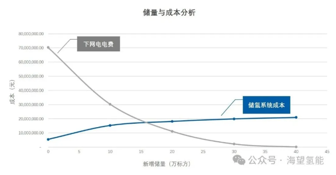 圖:某項目中不同的儲氫容量對應的下網電使用成本