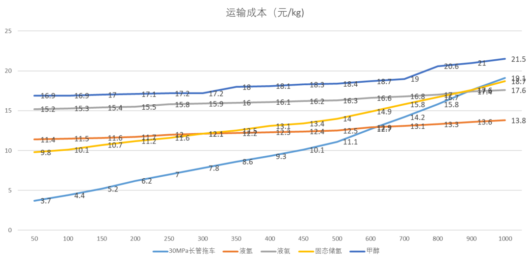 4、電解水制氫:穩(wěn)定電源下,以成都2023年5月份為例高峰電價(jià)為0.7536元/kWh,平段價(jià)格為0.5464元/kWh,夜間低谷時(shí)段充電價(jià)格則低至0.2602元/kWh,如果每4.6度電產(chǎn)1Nm3氫,則高峰段、平段和低谷段制氫成本分別為38.83元/kg、28.15元/kg、13.41元/kg。在儲(chǔ)運(yùn)及加注領(lǐng)域,20MPa長管拖車氣態(tài)儲(chǔ)運(yùn)百公里運(yùn)輸成本約7.79元/kg;35Mpa日加氫量500kg的加氫站滿負(fù)荷運(yùn)行,加注成本約11.33元/kg。如果以制氫成本平均價(jià)格18元/kg,再加上實(shí)際運(yùn)行中制氫廠家還要收取20%左右的利潤,則出廠價(jià)22元/kg左右,到加氫站槍口價(jià)41元/kg左右。實(shí)際運(yùn)行中無論是天然氣制氫、煤制氫或是工業(yè)副產(chǎn)氫,原料成本和設(shè)備成本相對(duì)比較穩(wěn)定,變動(dòng)比較大的是運(yùn)輸成本和氣體運(yùn)營企業(yè)的毛利,在供不應(yīng)求的局面下,能源企業(yè)或工業(yè)企業(yè)的自產(chǎn)氫價(jià)格遠(yuǎn)遠(yuǎn)低于商業(yè)氫氣。所以,我們會(huì)發(fā)現(xiàn)鋼鐵企業(yè)“體內(nèi)循環(huán)”車輛很容易達(dá)到經(jīng)濟(jì)性。第二個(gè)敏感的成本就是運(yùn)輸費(fèi)用,20MPa的氫氣運(yùn)輸車整車+氫氣重量接近40噸左右,但實(shí)際有效的氫氣運(yùn)輸量僅300多公斤,占整車重量的不足1%,主要變動(dòng)成本來自運(yùn)輸里程所的耗油量,所以,當(dāng)長管拖車尤其是20MPa的長管拖車運(yùn)行里程增加時(shí),費(fèi)用就會(huì)增加。因?yàn)閲鴥?nèi)燃料電池汽車主要示范區(qū)如粵港澳、長三角地區(qū)并非氫氣主要生產(chǎn)地,所以,實(shí)際運(yùn)行過程中氫氣的運(yùn)輸成本達(dá)到10-15元/kg,氫氣槍口價(jià)格達(dá)到60元/kg以上。傳統(tǒng)制氫不是瓶頸、燃料電池技術(shù)也已經(jīng)突破,實(shí)際最大的瓶頸是氫氣的運(yùn)輸。尤其是在韓國、日本等國家,他們需要通過國際貿(mào)易來解決氫氣供應(yīng)的問題,所以,氫氣的長途運(yùn)輸就成為一個(gè)重要的問題。在這種情況下,各國紛紛尋求氫氣的儲(chǔ)運(yùn)方案,包括低溫液氫,固態(tài)儲(chǔ)氫、有機(jī)化合物儲(chǔ)氫等等,但都不便宜。除了成本,高壓和液氫的安全管理難度也遠(yuǎn)遠(yuǎn)高于液體能源。現(xiàn)行的高壓輸氫可以通過升壓來降低一些成本,當(dāng)長管拖車壓力到30MPa時(shí)百公里運(yùn)輸成本可以降至5元/kg,長管拖車壓力到52MPa時(shí)可以降至3.5元/kg,而在500km以內(nèi),其他儲(chǔ)運(yùn)方式都比高壓儲(chǔ)氫貴,雖然長距離費(fèi)用變化不大,起點(diǎn)都在10元/kg或以上。現(xiàn)實(shí)中高壓輸氫已然成為氫能發(fā)展的經(jīng)濟(jì)性障礙,除了大規(guī)模應(yīng)用的管道運(yùn)輸,想要用其他的運(yùn)輸方式降低成本非常困難。