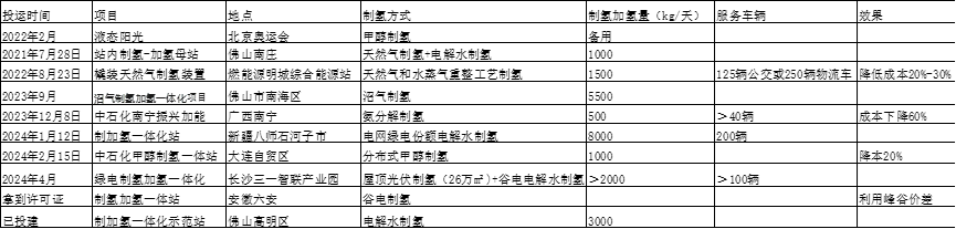 表1 國內(nèi)主要制加氫一體站項(xiàng)目