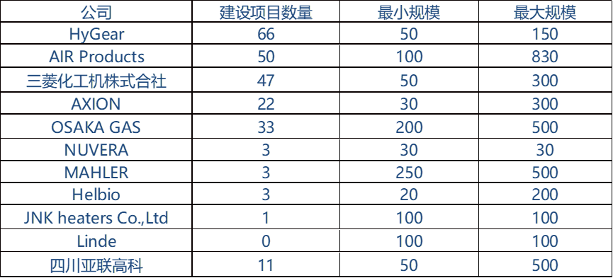 表2 國際市場天然氣制氫代表企業(yè)業(yè)績(單位Nm3/h)