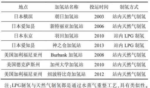 表3 日本、美國在運(yùn)行的站內(nèi)重整制氫加氫站(部分)