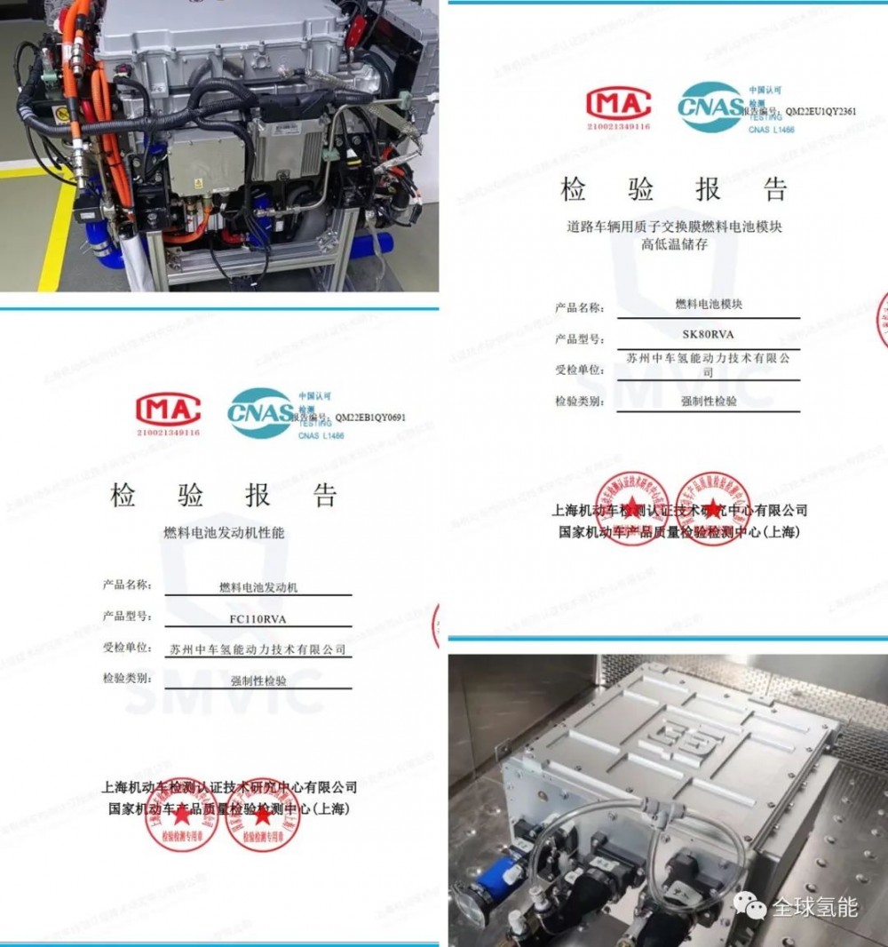 近日,蘇州中車氫能動力技術有限公司(簡稱“蘇州中車”)自主研發的FC110RVA型燃料電池系統和SK80RVA型電堆分別通過了國家強檢驗證,這是繼60kW系統、100kW系統后又兩個通過國家強檢驗證的產品,為半掛牽引車、工程車、重卡、公交等商用車領域的市場開拓奠定了基礎。