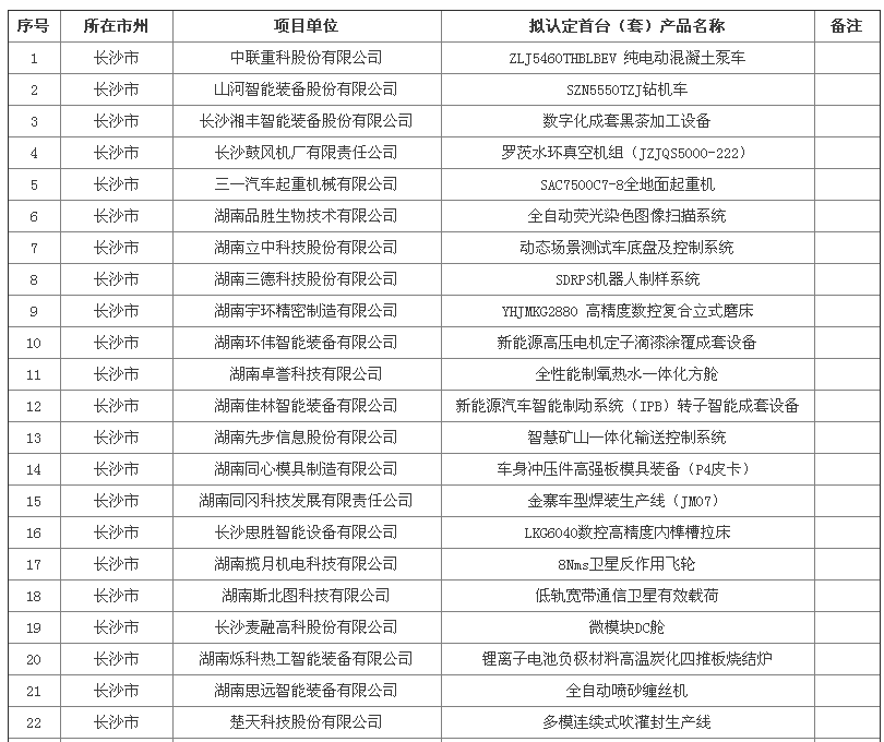 關(guān)于2024年湖南省首臺(tái)(套)重大技術(shù)裝備擬認(rèn)定產(chǎn)品名單的公示