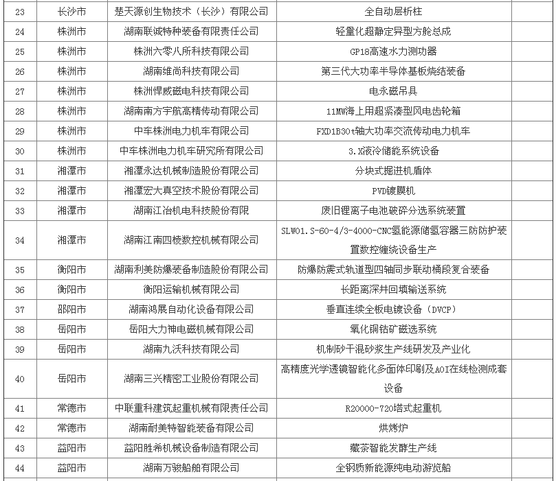 附件:2024年湖南省首臺(tái)(套)重大技術(shù)裝備擬認(rèn)定產(chǎn)品名單