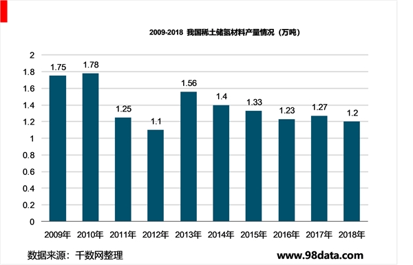 我國儲(chǔ)氫材料產(chǎn)量高,但是集中應(yīng)用在低端消費(fèi)電池領(lǐng)域。全球稀土材料95%由中國和日本供應(yīng),2005年以來,中國儲(chǔ)氫合金產(chǎn)量超過全球總產(chǎn)量的70%。2018年,稀土儲(chǔ)氫材料約為1.2萬噸。但是生產(chǎn)的儲(chǔ)氫材料主要應(yīng)用在消費(fèi)型鎳氫電池領(lǐng)域,功率型鎳氫電池用的高端稀土儲(chǔ)氫材料的產(chǎn)業(yè)化和日本相比還存在較大差距。