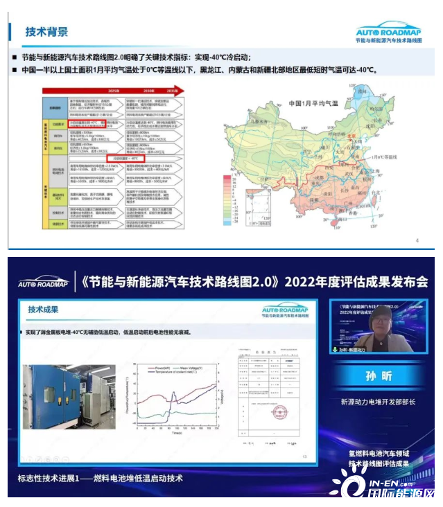 發布會上,新源動力電堆開發部部長孫昕分享了《燃料電池堆低溫啟動技術》的主題演講,通過技術背景、低溫啟動技術原理解析、技術先進性、技術成果和技術應用范圍等方面做了詳盡的解讀。她表示,低溫啟動的成敗取決于生成水與產生廢熱的速度以及電池自身熱容,基于這一難題,新源動力通過適應低溫環境高可靠性燃料電池電堆技術、水含量精準控制的快速停機吹掃技術、燃料電池電堆低溫啟動技術三大方面著手,在產品的策劃和應用層面,解決技術難點,實現節能與新能源汽車技術路線圖2.0明確的關鍵技術指標。