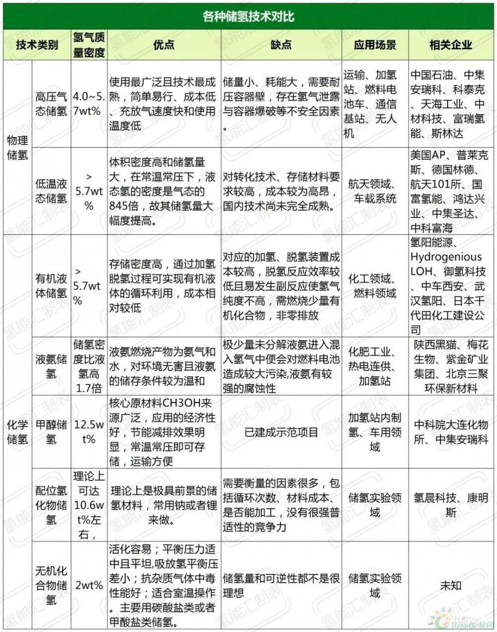 而且儲氫的技術不能只考慮儲氫量的多寡,還要考慮原材料成本高不高,釋放氫氣難不難,是否需要溫度限制,材料是否具備循環利用的特性等。最關鍵的一點,還是成本限制,有業內人士認為,考察一項技術是否是可行,也要參考國內外企業使用該技術的多不多,有些儲氫技術在實驗室數據很美好,但在實際操作過程中卻與實驗室的結果大相徑庭,因此需要審慎地對待相應的儲氫技術。