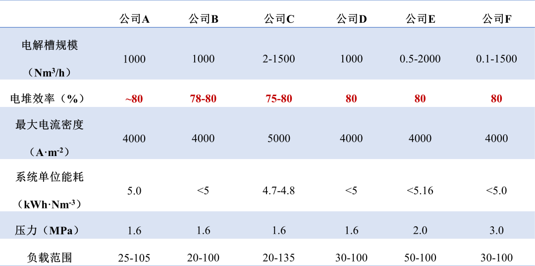 在目前應用最為廣泛的1000 Nm3/h電解槽上,各公司對電解槽結構進行了新開發,代表性的有——