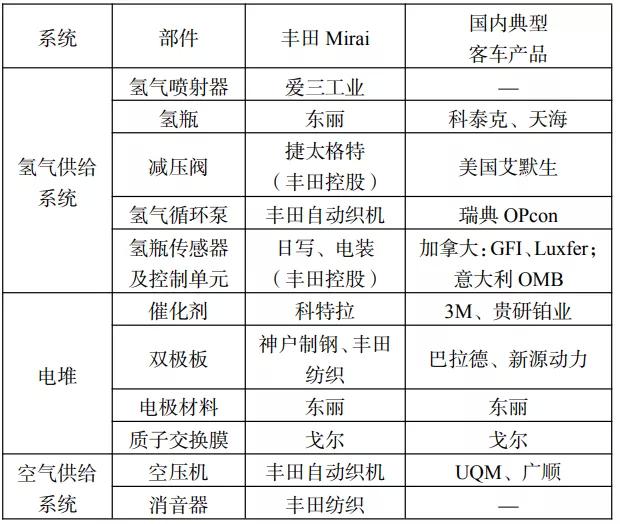 2.8 中日典型燃料電池汽車主要部件供應商對比