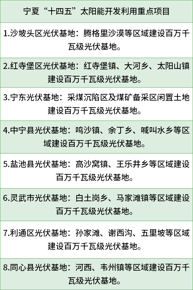 寧夏“十四五”太陽能開發(fā)利用重點項目包括: