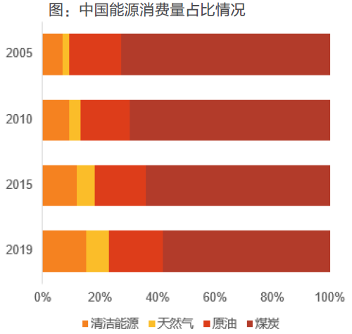 我國的能源結構則自 2005 年起發生較大改變,原油和煤炭消費量占比較高但總體呈下降趨勢;清潔能源占比逐年穩步提升。伴隨著能源結構逐步轉型,氫能源作為清潔能源將具備良好的發展前景。