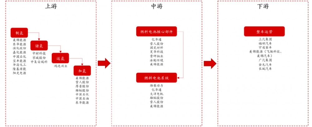 下游:則是各整車廠對氫燃料電池的應用。