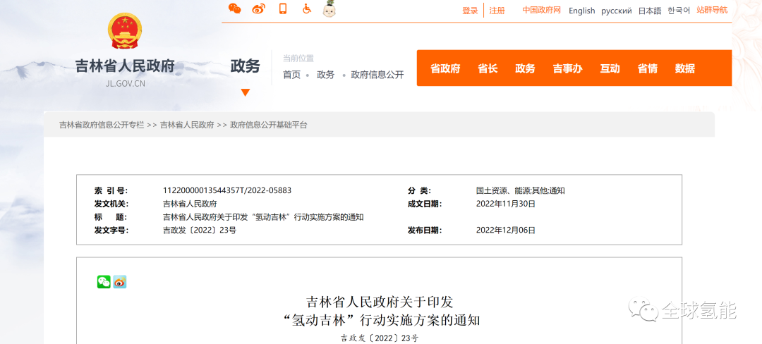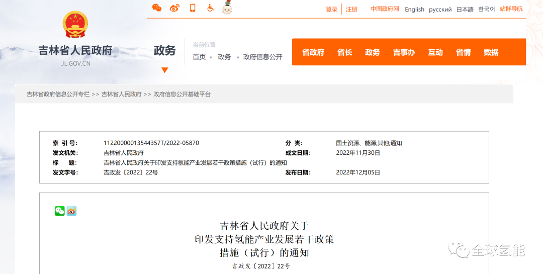 12月5日,12月6日,吉林省人民政府發(fā)布《支持氫能產(chǎn)業(yè)發(fā)展若干政策措施(試行)》的通知及《“氫動(dòng)吉林”行動(dòng)實(shí)施方案》的通知。