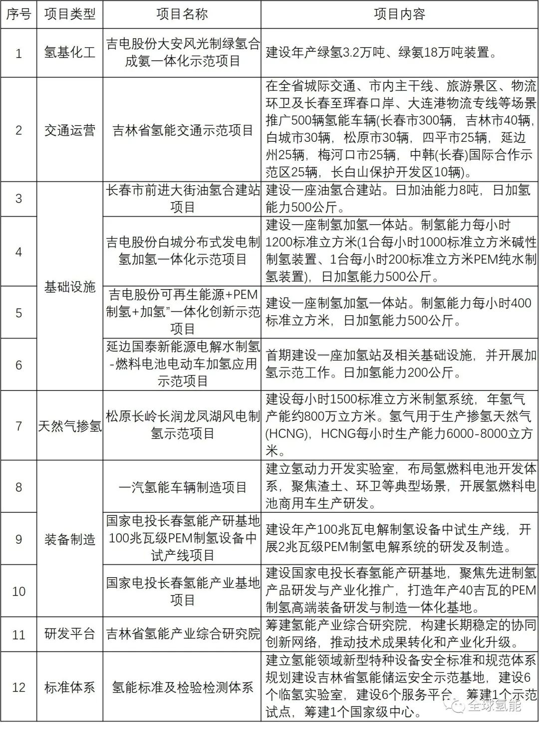 圖 《“氫動(dòng)吉林” 行動(dòng)年度示范項(xiàng)目清單(2022年度)》項(xiàng)目