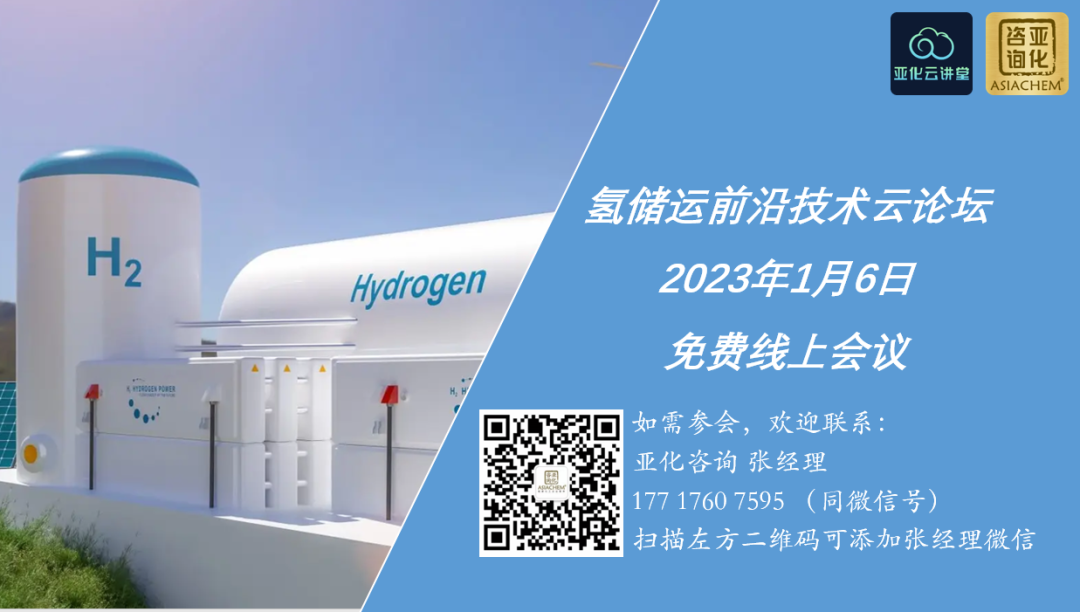 在此背景下,由亞化咨詢舉辦的氫儲運前沿技術云論壇將于2023年1月6日上午召開(限時免費),歡迎聯系亞化咨詢報名參會。