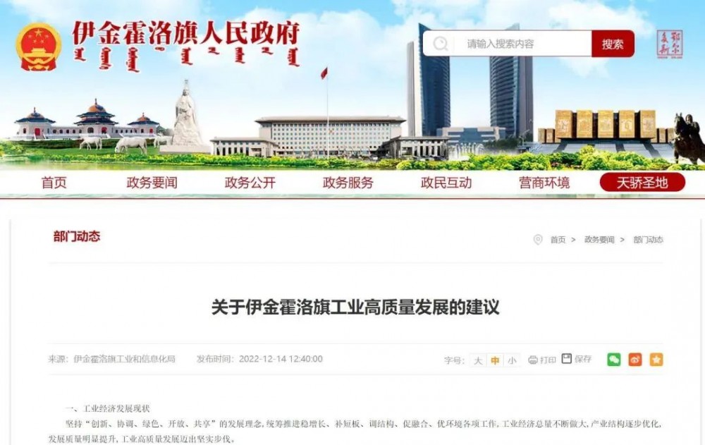 12月14日,伊金霍洛旗工業和信息化局發布《關于伊金霍洛旗工業高質量發展的建議》的通知,其中氫能方面指出: