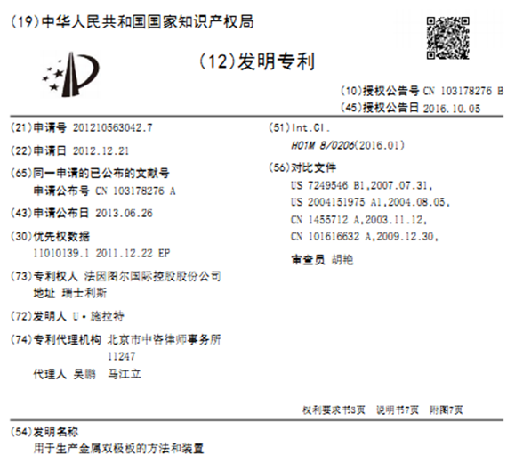 法因圖爾在金屬雙極板方面有超過15年的研發和樣件制造經驗。早在10年前,法因圖爾就已經完成了金屬雙極板的生產工藝和裝置的發明專利申請,在中國的發明專利也在2012年就獲批。