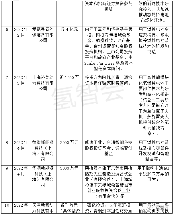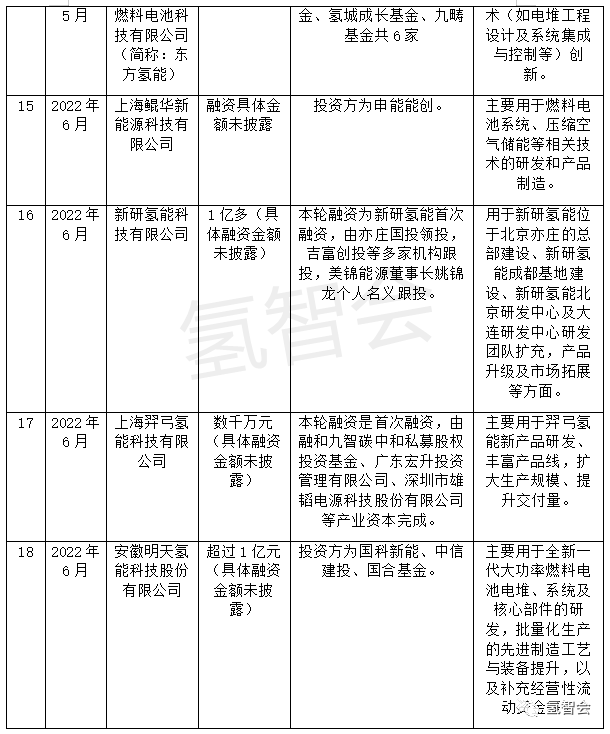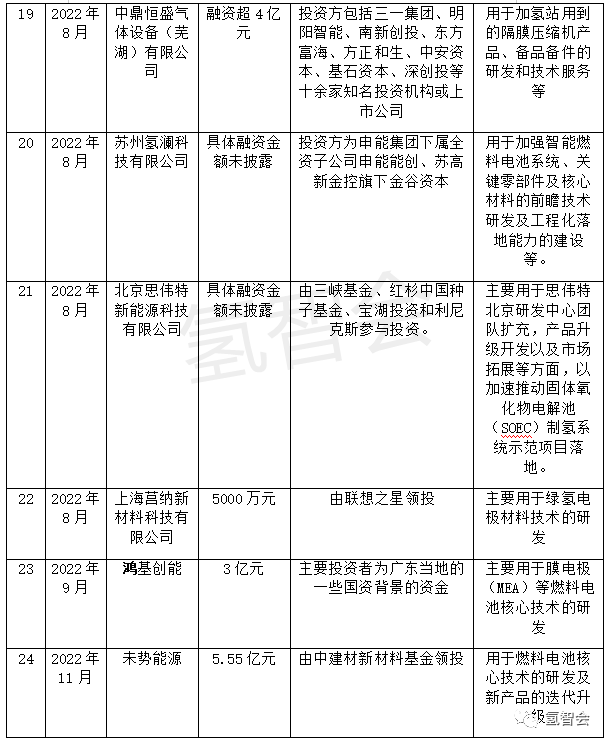 現將2022年以來氫燃料公司的融資情況作一個簡單的統計盤點。