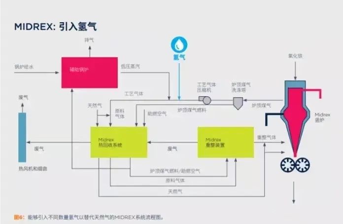 基本思路:對原有的高爐-轉爐煉鋼工藝路線進行逐步改造,把以高爐為基礎的碳密集型煉鋼工藝逐步轉變為直接還原煉鐵-電弧爐工藝路線,同時實現富余氫氣的多用途利用。