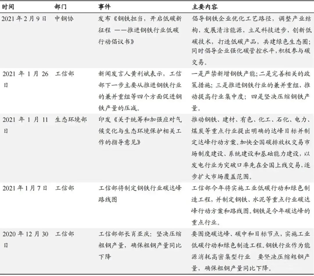 鋼鐵行業減碳相關政策事件梳理
