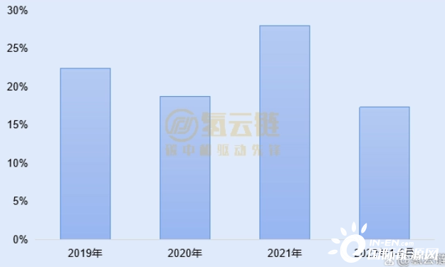 2022年上半年,捷氫客戶集中度有所上升,其中燃料電池系統和電堆前三客戶占據公司對應業務營收的百分之百,儲氫系統和工程技術服務只有單一客戶。另一方面,如圖表4所示,捷氫2019年-2022年上半年綜合毛利率分別為22.42%、18.67%、27.99%和17.29%。2022年上半年,捷氫產品的綜合毛利率略有下降。