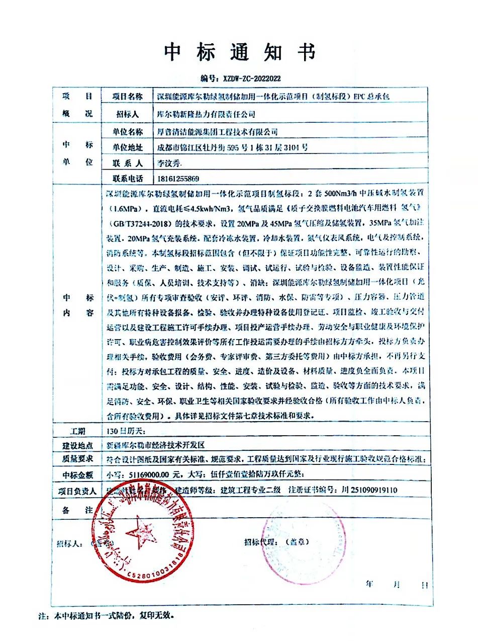 深圳能源庫爾勒綠氫制儲加用一體化示范項目(制氫標段)的中標,標志著厚普工程的EPC總承包業務邁上了新臺階,也進一步驗證了厚普工程的綠色轉型邏輯,對公司下一步深度布局,后續更多項目的獲取、建設、實施奠定了堅實基礎。