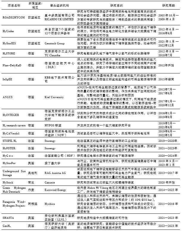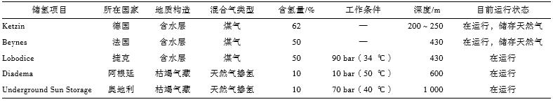 1979年美國天然氣技術(shù)研究院發(fā)表了地下儲氫研究報告,證實了其經(jīng)濟和技術(shù)上的可行性。1986年,根據(jù)Taylor等人研究,地下儲氫是最經(jīng)濟的儲氫方法。此外表1也展示一些項目研究證明其可行性。