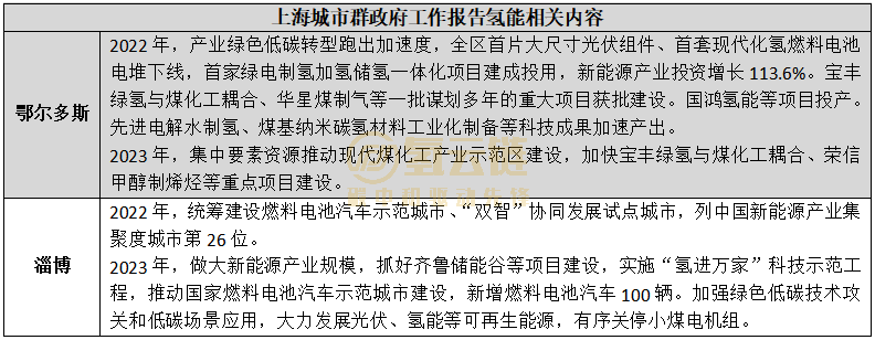 3、發展重點增多:綠氫+汽車成為主旋律。2022年各地政府報告中以燃料電池汽車為主,較少提及綠氫相關的規劃。2023年已公布政府報告全文的13個地區中,有開封、鄂爾多斯、濰坊、天津濱海新區、鄂爾多斯、包頭、烏海等6個地區提到了綠氫,“綠氫+汽車”形成了氫能規劃主旋律。