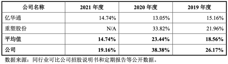 報告期內捷氫科技的毛利率分別為22.42%、18.67%和27.99%,而同行可比公司綜合毛利率平均值分別為38.19%、37.81%、37.88%。數據顯示,捷氫科技較同行業可比公司億華通的綜合毛利率低了10%-20%。對此公司表示,綜合毛利率差異主要受產品結構以及客戶群體不同所致。