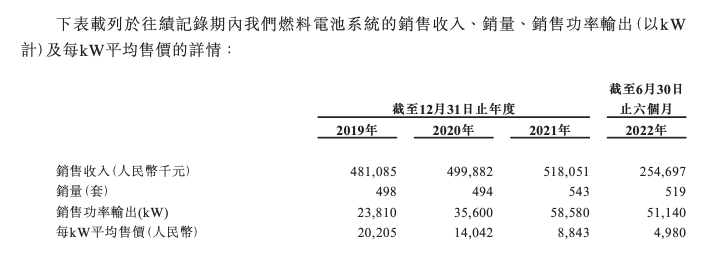 億華通在招股書中也提到,我們面臨及預期未來將面臨價格下調壓力,原因是市場競爭加劇導致燃料電池系統的平均售價下跌。