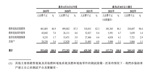 作為一家燃料電池制造商,億華通主要為客車及貨車等商用車設計、開發并制造燃料電池系統及電堆。根據灼識咨詢報告,按2021年燃料電池系統總銷售功率計算,億華通的市場份額為27.8%,在前五大燃料電池公司中排名第一。