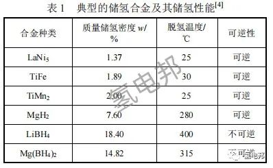 典型儲氫合金及其儲氫性能如表 1 所示。