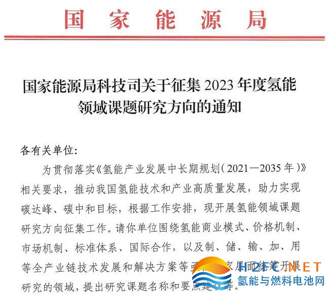 為貫徹落實《氫能產(chǎn)業(yè)發(fā)展中長期規(guī)劃(2021—2035年)》相關要求,推動我國氫能技術和產(chǎn)業(yè)高質(zhì)量發(fā)展,助力實現(xiàn)碳達峰、碳中和目標,國家能源局科技司委托我會組織開展2023年度氫能領域課題研究方向征集工作。