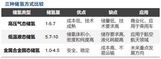 固態儲氫是以金屬氫化物、化學氫化物或納米材料等作為儲氫載體,通過化學吸附和物理吸附的方式實現氫的存儲。固態儲氫密度更高,但是成本也更高,技術更復雜,目前還比較難商業化。