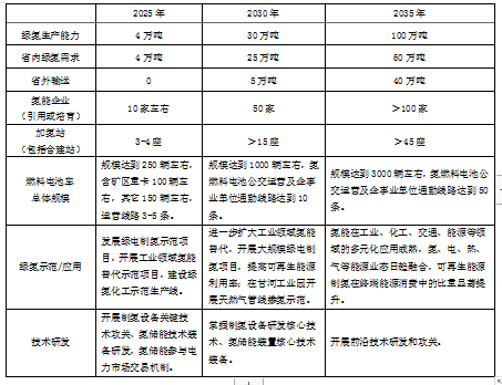 2031年到2035年,氫能產(chǎn)業(yè)發(fā)展安全形勢(shì)穩(wěn)定,氫能產(chǎn)業(yè)規(guī)模、質(zhì)量效益、創(chuàng)新能力進(jìn)一步提升,產(chǎn)業(yè)局部取得重大突破并形成國內(nèi)領(lǐng)先優(yōu)勢(shì),氫能與電力、交通、工業(yè)等多領(lǐng)域廣泛實(shí)現(xiàn)較高水平融合,可再生能源制氫基本實(shí)現(xiàn)市場(chǎng)化,成為全省能源和產(chǎn)業(yè)脫碳的重要保障,在能源和產(chǎn)業(yè)綠色低碳轉(zhuǎn)型發(fā)展中起到有力的支撐作用。