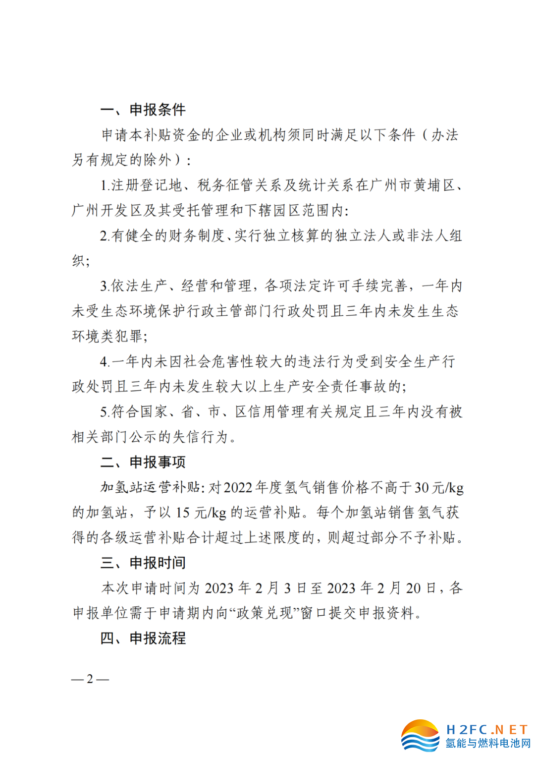 2月2日,廣州市黃埔區發改局發布了《關于組織開展2023年區促進氫能產業發展辦法兌現工作(第一批)的通知》。
