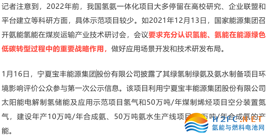 值得注意的是,目前多個國家已陸續啟動氫氨能源示范項目。早在2021年,韓國便宣布將2022年作為氫氣氨氣發電元年,力求打造全球第一大氫氣和氨氣發電國。今年1月,日本政府宣布將制定新法支持氫能和氨能的普及。