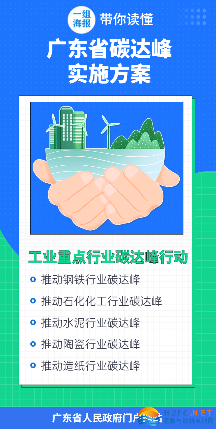 2月7日,廣東省人民政府發布《廣東省碳達峰實施方案》,提出到2030年,非化石能源消費比重達到35%左右,順利實現2030年前碳達峰目標。為此提出了15類共54項重點任務。其中涉及氫能的有以下各條: