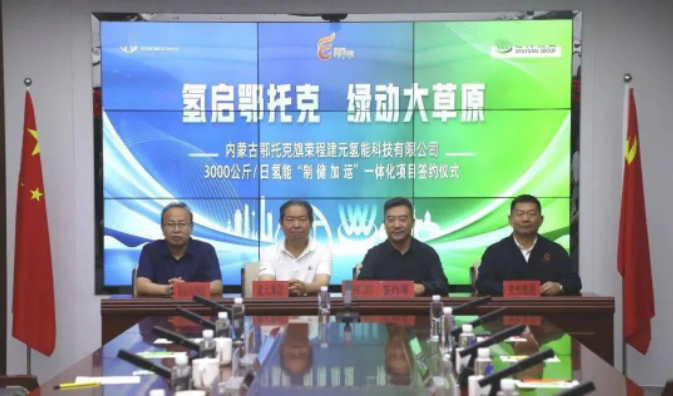 6月16日,氫啟鄂托克 綠動大草原-鄂托克旗人民政府、鄂托克經濟開發區管委會、榮程集團、建元集團3000公斤/日氫能“制 儲 加 運”一體化項目簽約儀式舉行。