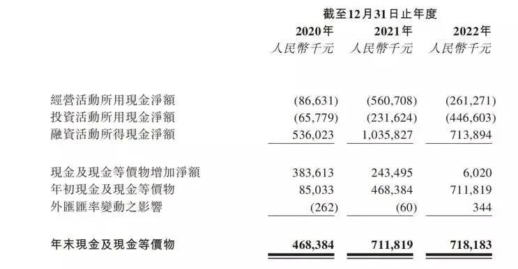然而,其經營現金流連續三年為負,分別為-8663.1萬元、-5.61億元、-2.61億元。