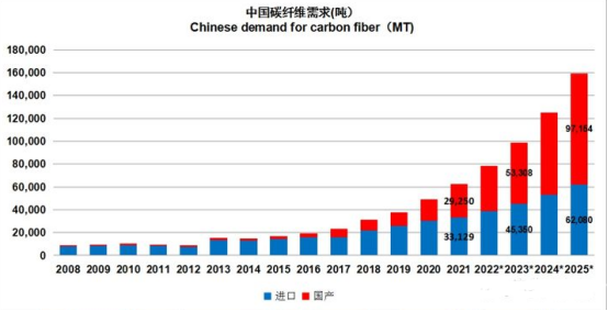 碳纖維增強塑料是Ⅲ型和Ⅳ型儲氫瓶的主要承載材料,也是車載儲氫瓶的成本大頭。據美國能源部統計,35MPaⅣ型瓶、70MPaⅣ型瓶、35MPaⅢ型瓶、70MPaⅢ型的碳纖維占比分別為76.58%、78.01%、62.43%、65.64%,可見儲氫瓶的型號及壓力是決定碳纖維用量的主要因素,Ⅳ型瓶碳纖維占比要低于Ⅳ型,相對來說成本更低。