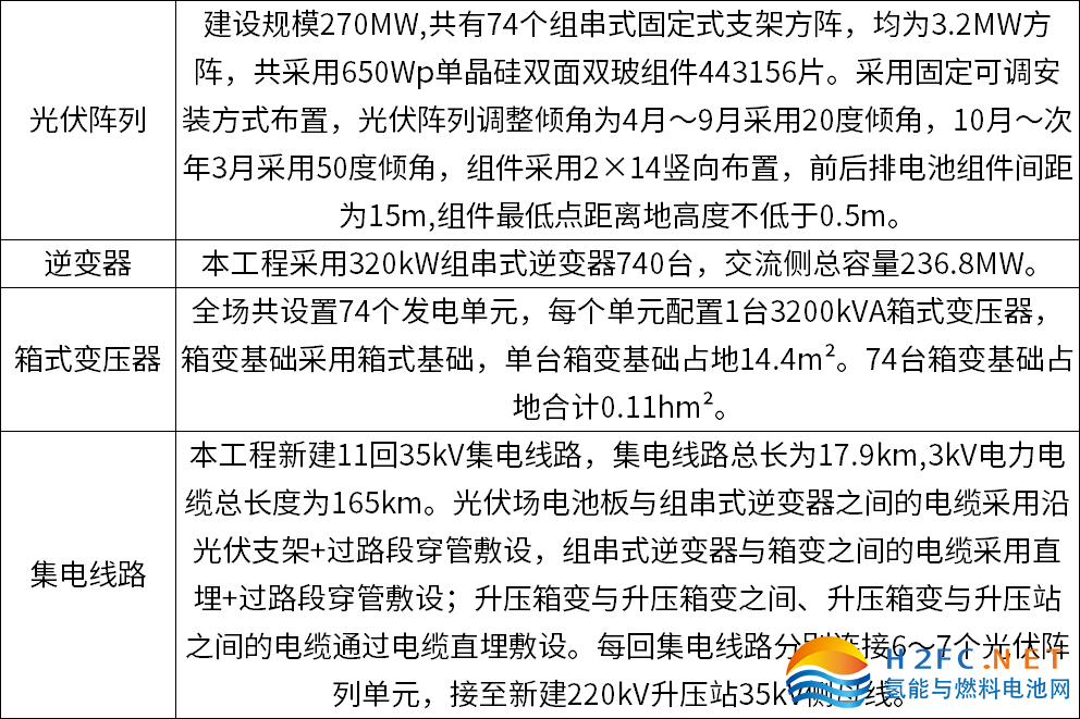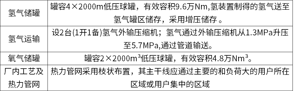 據介紹,該項目風電光伏部分建設27MW光伏發電工程和49.5MW風力發電工程,所發電力經過輸變電路輸送至制氫站用作電解水制氫;制氫裝置共配置28套1000Nm³/h堿性電解槽,儲氫設置4臺2000立方米低壓儲罐,電解水制氫所產綠氫送至當地的中天合創公司用作化工生產原料,綠氧全部也供給中天合創公司使用。