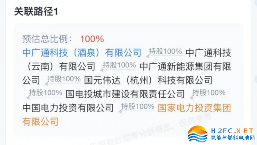 上述提到的“國電投城市建設有限責任公司”也出現在前面提到的天眼查顯示的中廣通科技(酒泉)股權追溯鏈中,天眼查還顯示該公司是國家電投的全資控股的三級子公司。