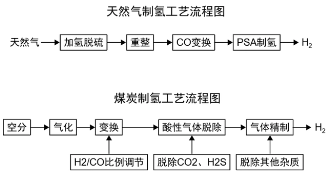 普通化石燃料制氫工藝流程圖