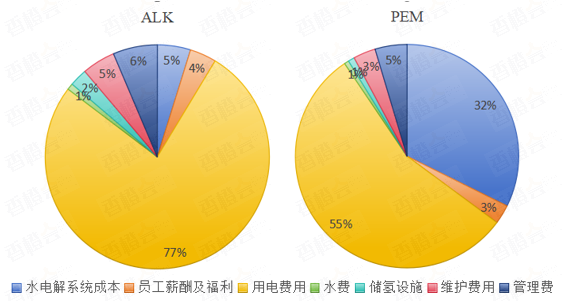 圖 1:ALK和PEM各環(huán)節(jié)制氫成本占比