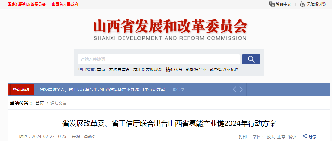2月18日,山西省發展改革委、省工信廳聯合出臺《山西省氫能產業鏈2024年行動方案》。