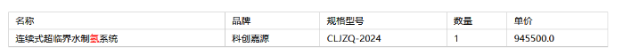 據悉,該項目為江西理工大學國際創新研究院連續式超臨界水制氫系統采購,供應商為陜西科創嘉源實業有限公司,中標金額為945500.00元。