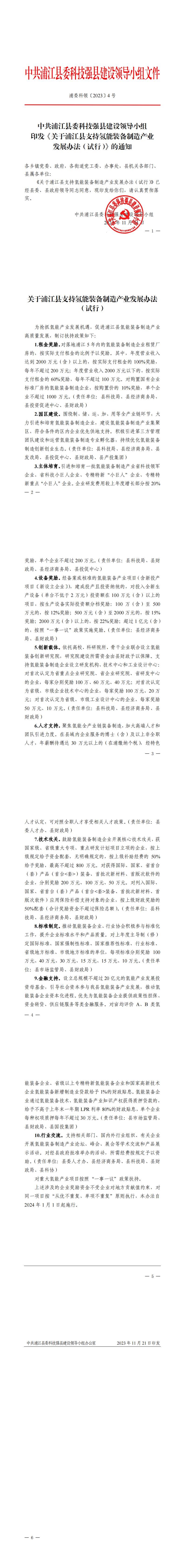 2024年3月15日,中共浦江縣委科技強縣建設領導小組印發《關于浦江縣支持氫能裝備制造產業發展辦法(試行)》的通知。